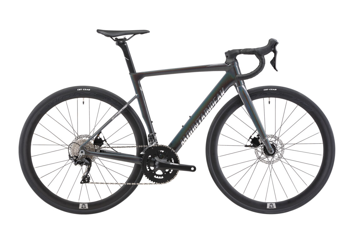 The frame features aerodynamic tube shapes that reduce drag and improve efficiency, helping riders cut through the wind with less effort — a key advantage on the road.
